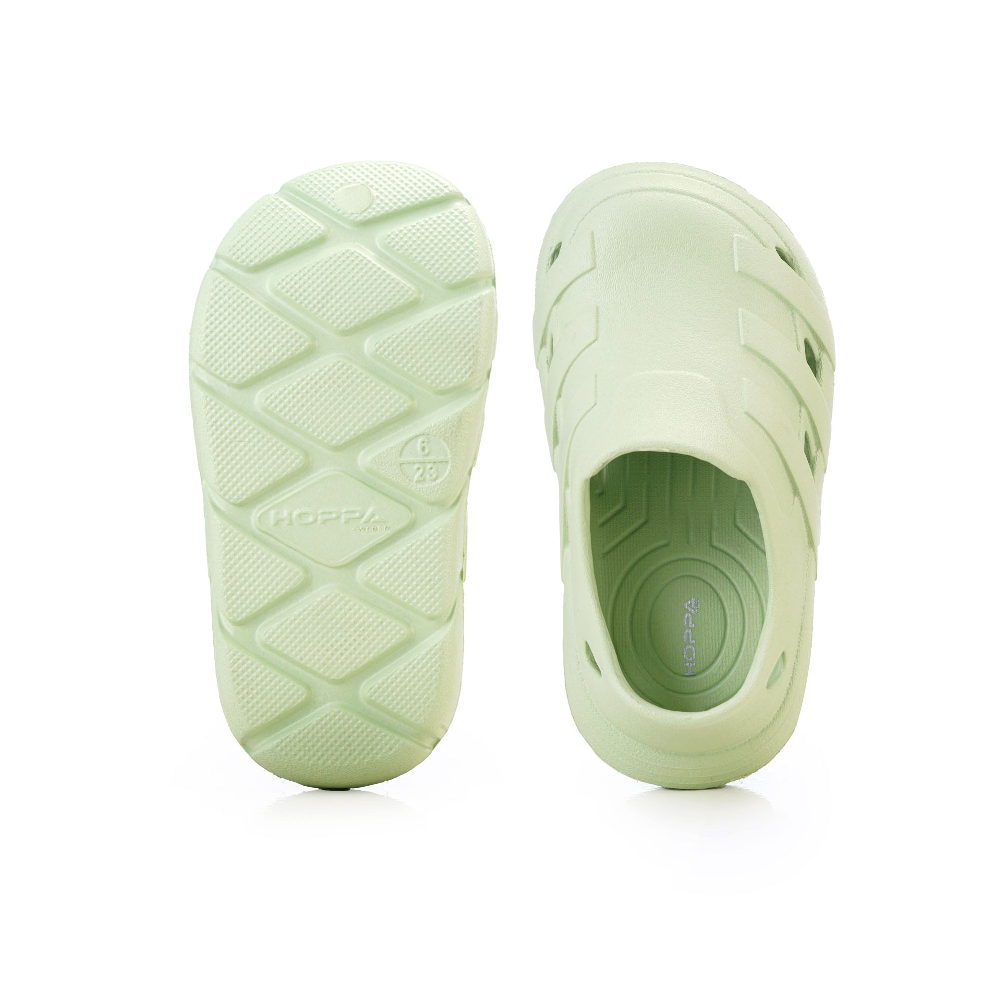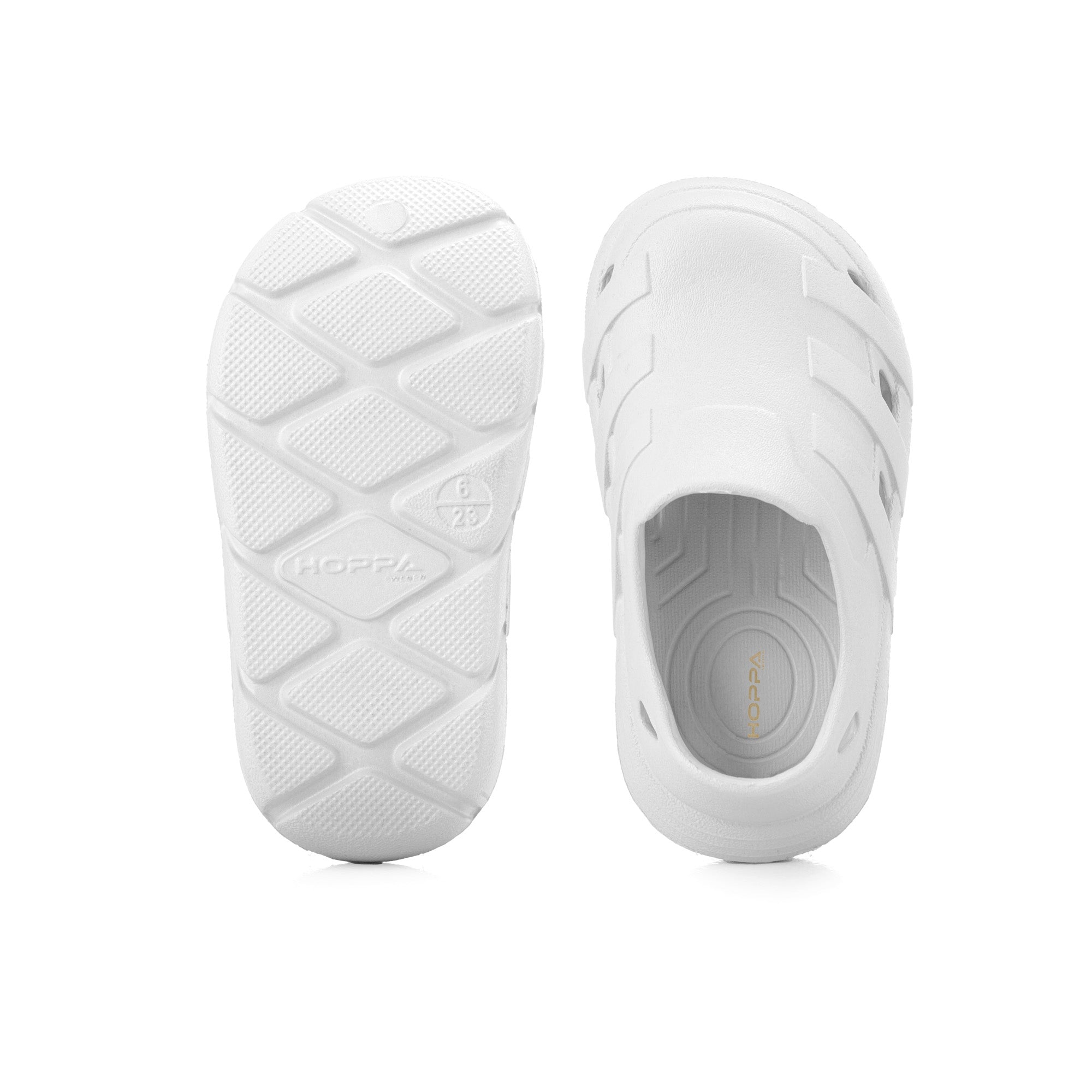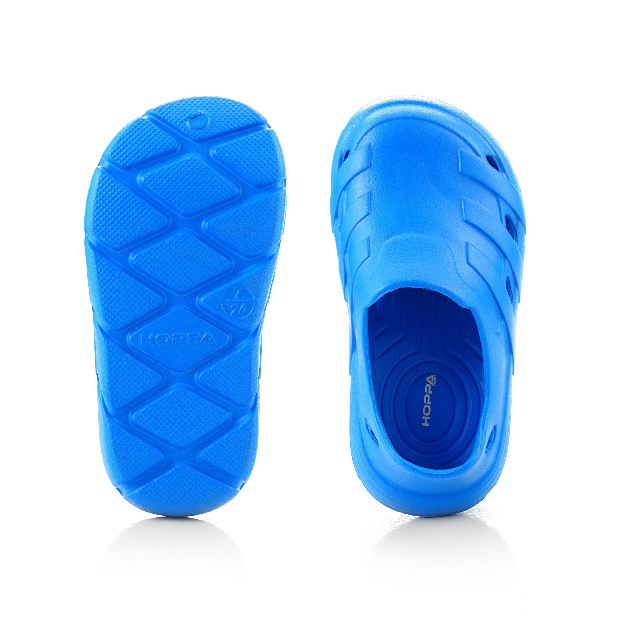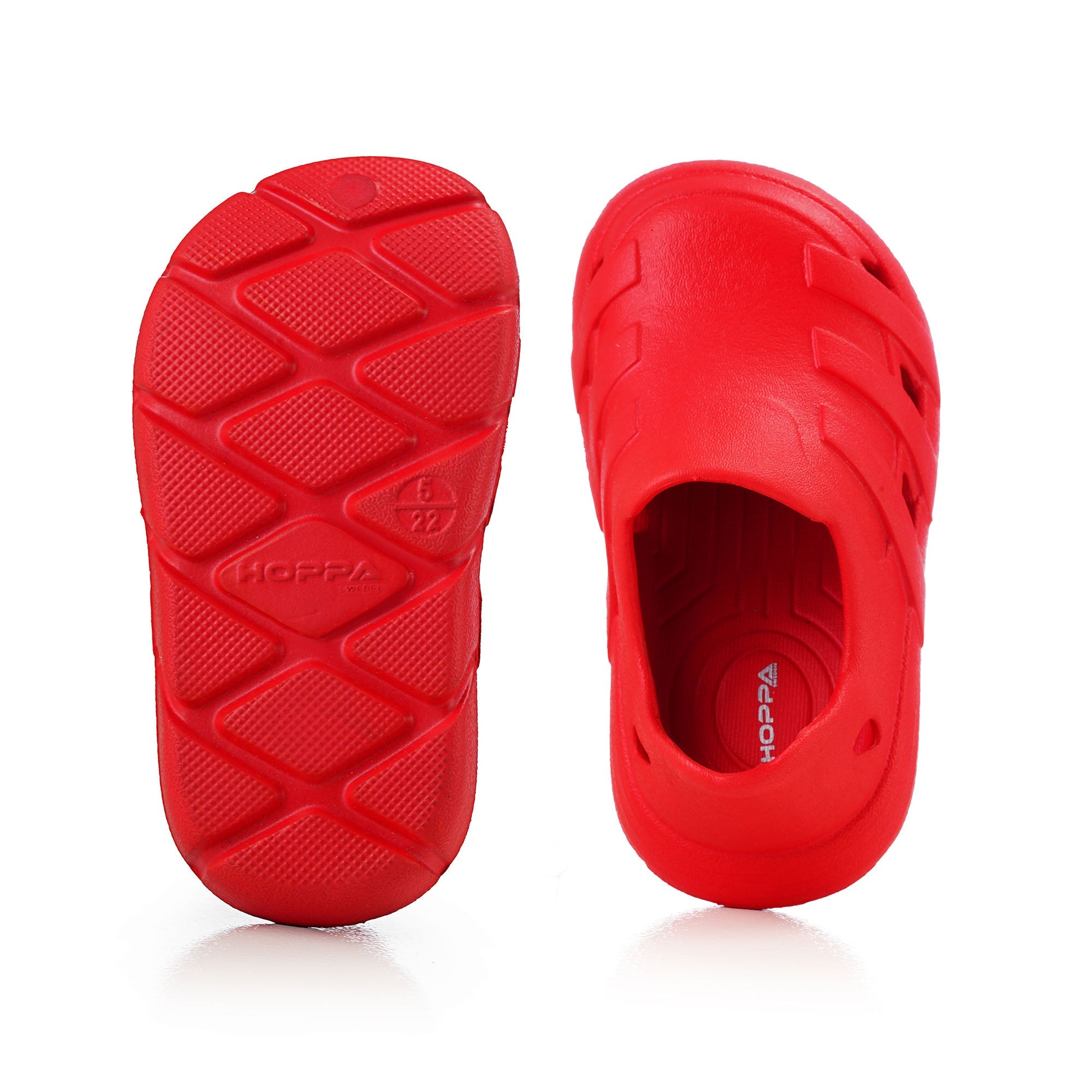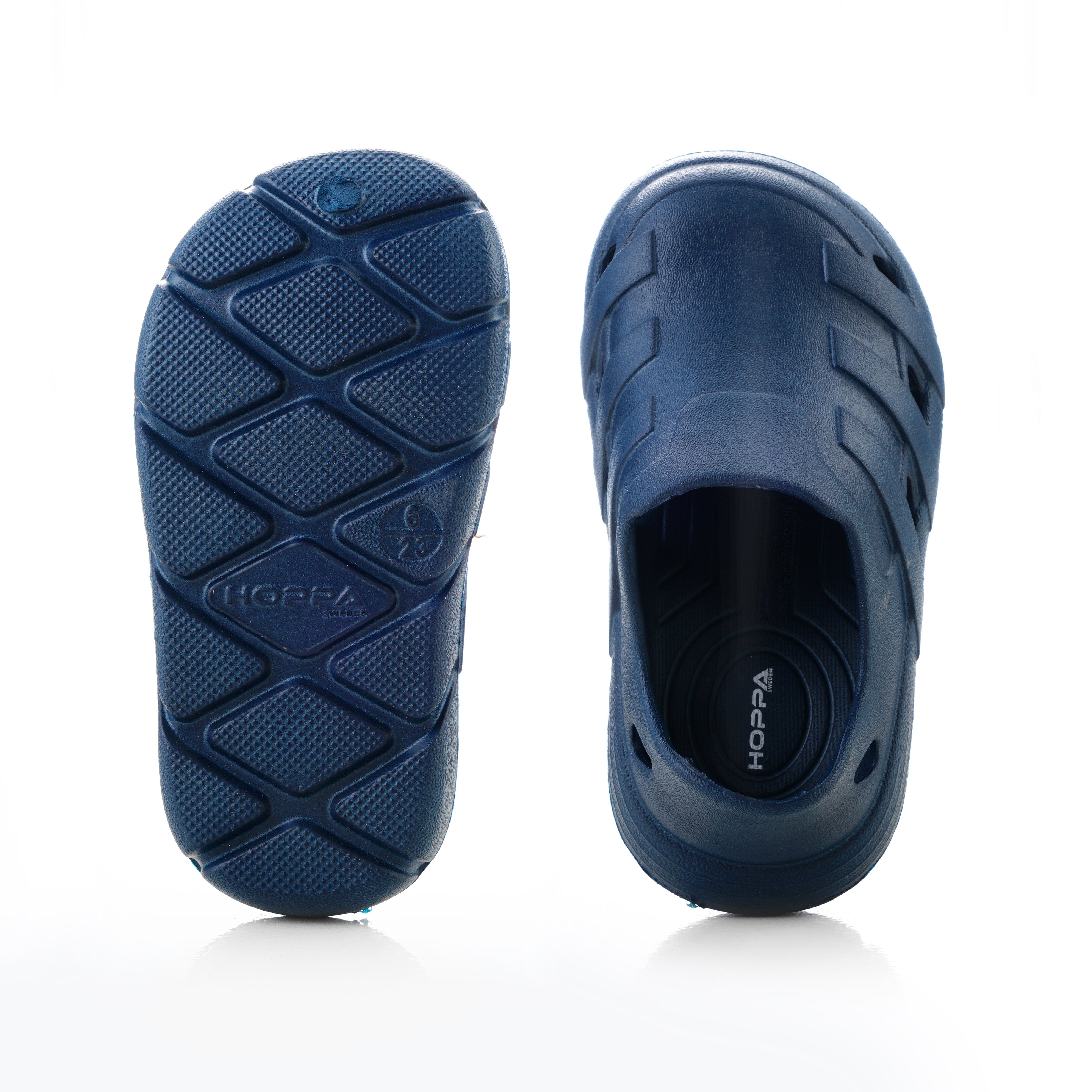 Usually ready in 24 hoursIntroducing the Hoppa Sweden Speedy Kids Clog, crafted for comfort, safety, and adaptability. These clogs feature a breathable upper with holes for quick-drying capabilities. The thickened non-slip and wear-resistant outsole ensures safe walking, while the slip-on closure with pivoting heel straps provides a secure fit and easy on/off access. They come with an adjustable strap for switching between open and closed back, making them suitable for indoor and outdoor activities as sandals or clogs.