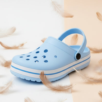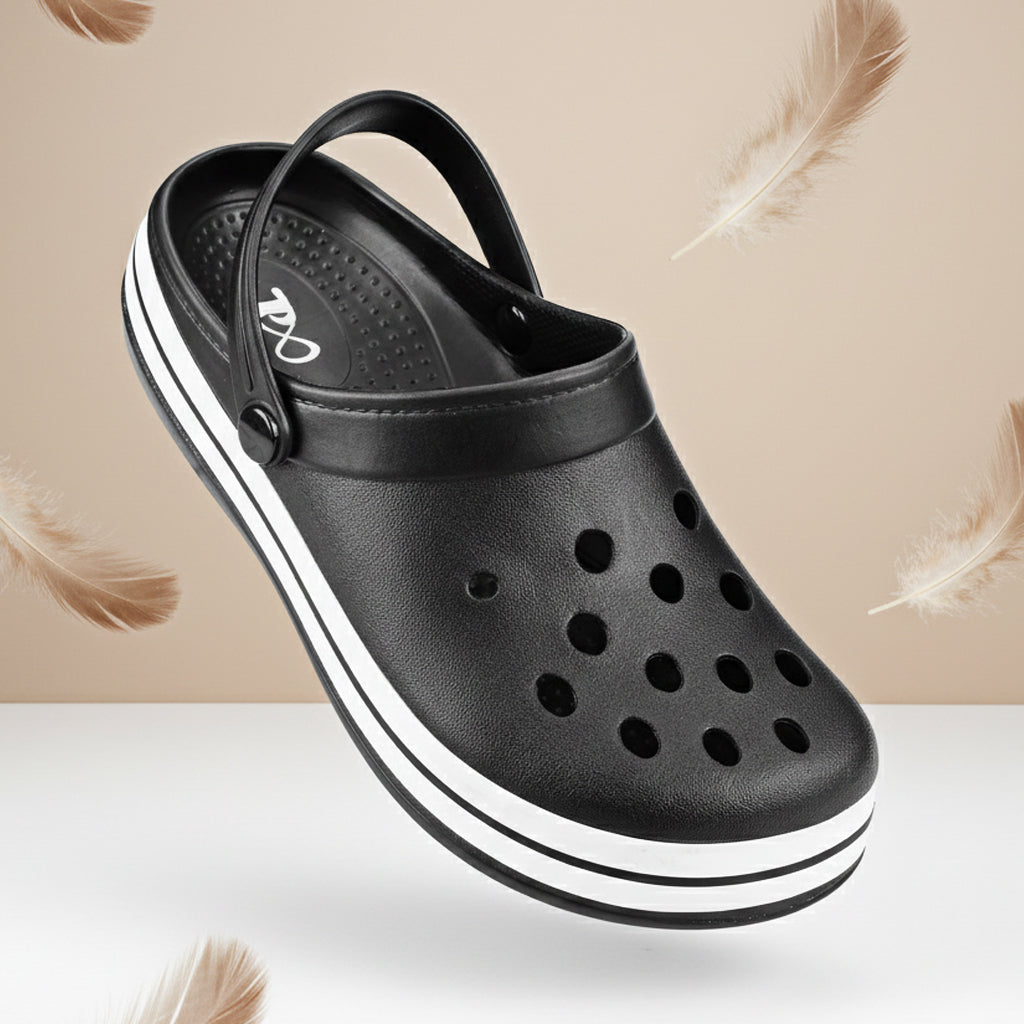 The flat heel design ensures stability, while the adjustable backstrap closure provides a secure yet easy slip-on fit. Perfect for indoor lounging, outdoor walks, travel, or even rainy days, these clogs bring together functionality and effortless style.