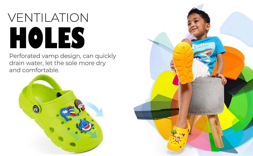 The thickened, non-slip, and wear-resistant outsole offers excellent traction and durability, keeping every step safe and steady. Featuring a slip-on closure with pivoting heel straps, they provide both ease of use and a secure fit. The adjustable back strap allows kids to switch between an open-back sandal style or a closed-back clog, giving them two styles in one pair!