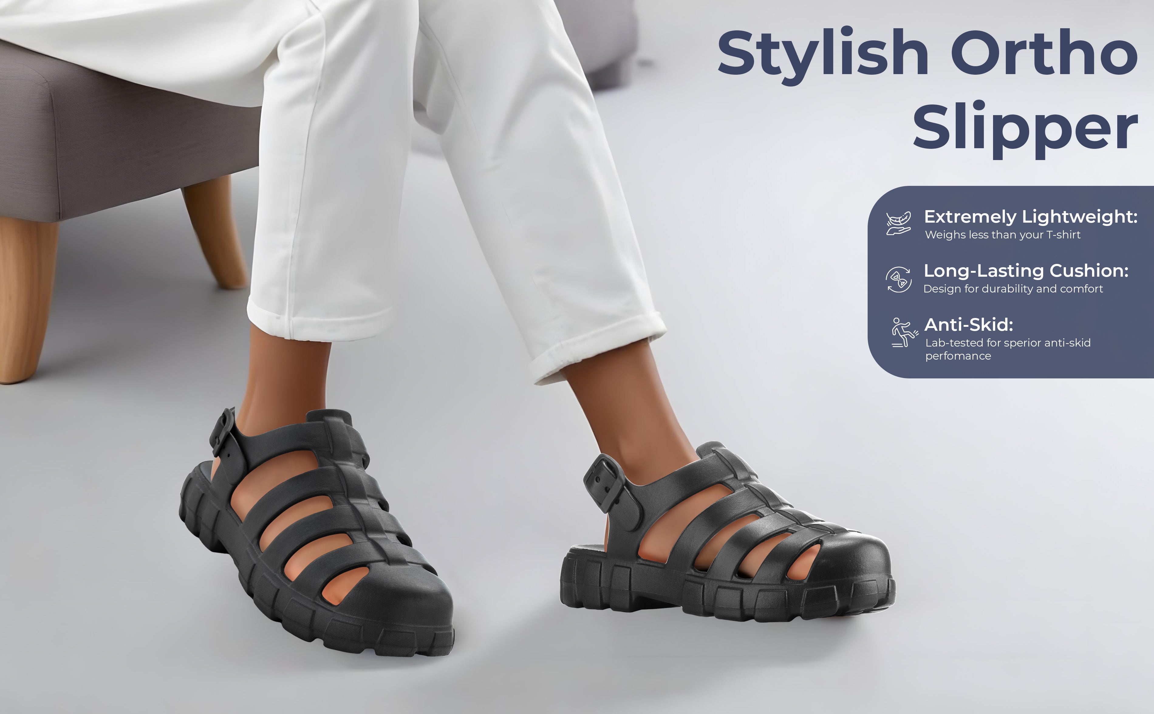 - Secure Slip on closure for an adjustable and comfortable fit