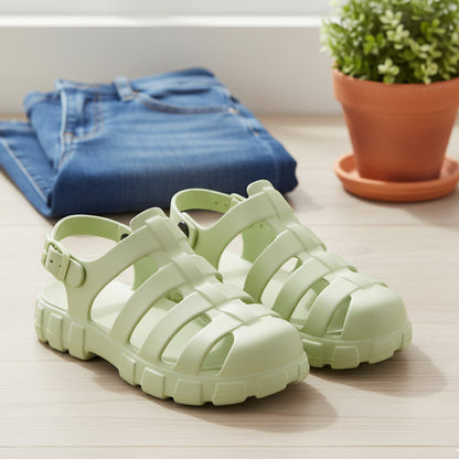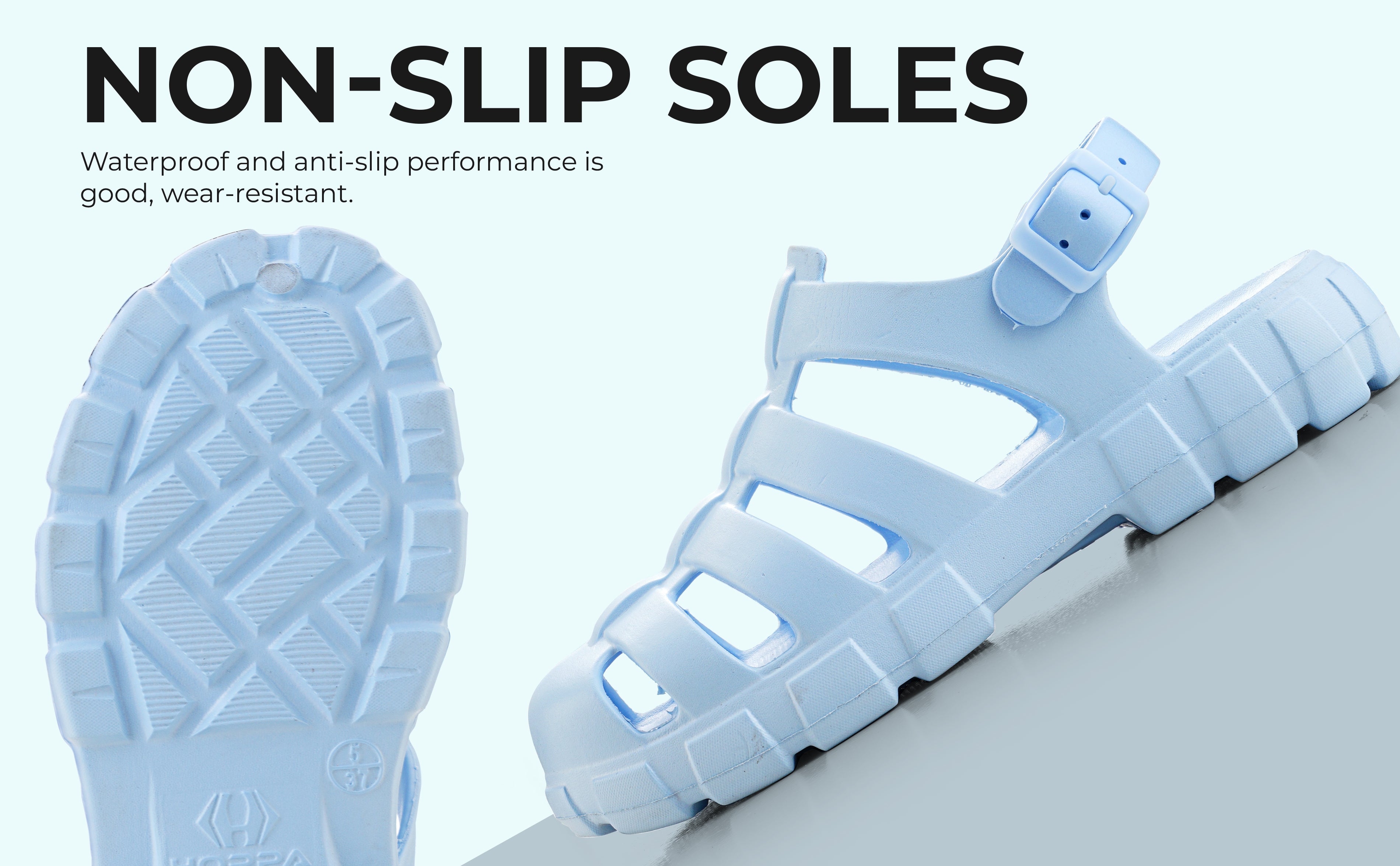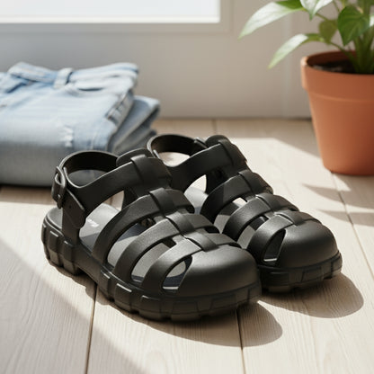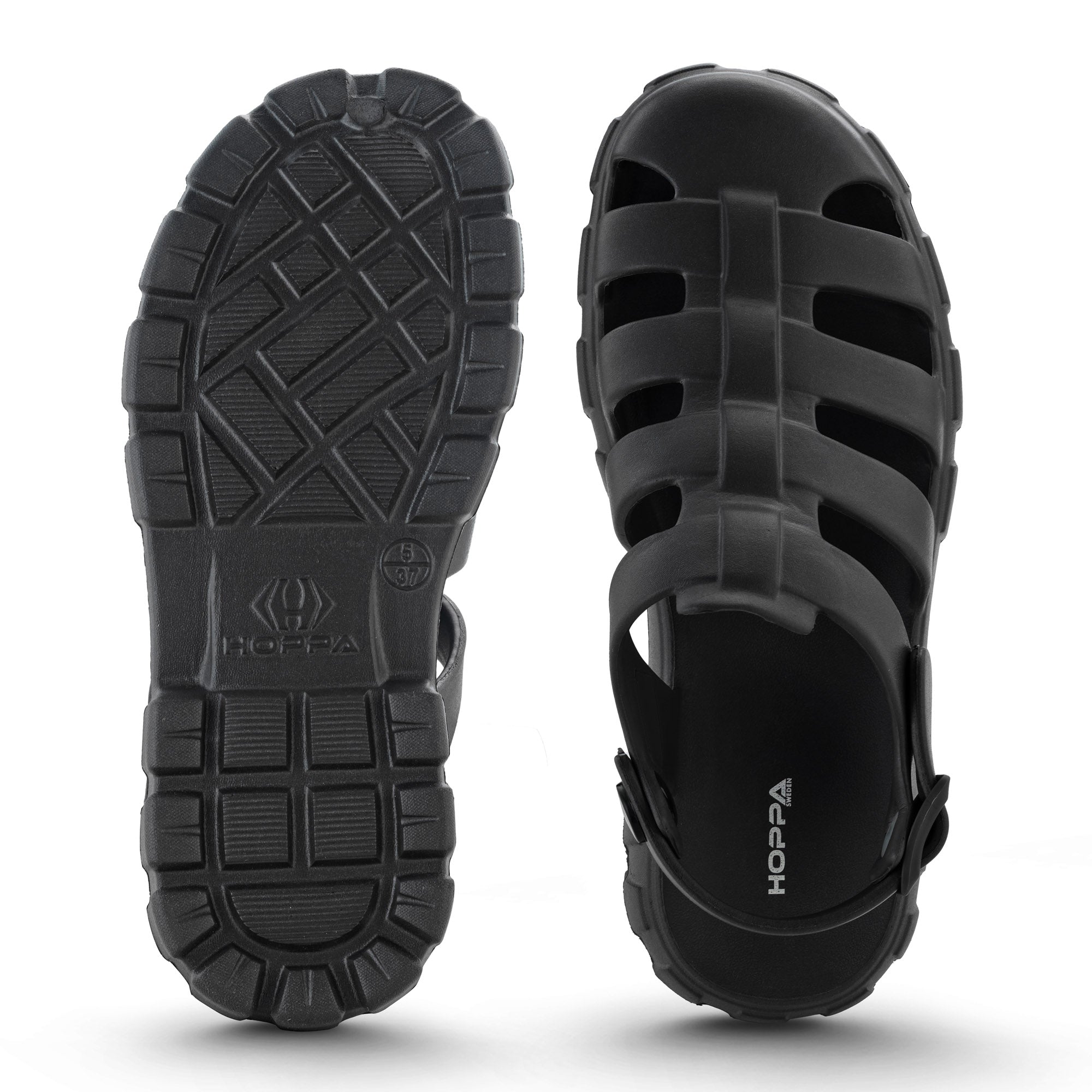Usually ready in 24 hoursIntroducing the Hoppa Sweden Lucia Women Sandal in Black, designed for maximum comfort and durability. These sandals are crafted with Hopp Tech R-eva material, ensuring superior cushioning and support. The waterproof construction keeps your feet dry, while the flat heel provides stability and comfort. Perfect for a variety of activities, these sandals are ideal for both indoor and outdoor use.